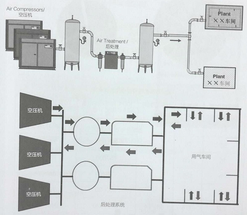 空压机的工作原理就是,空压机将大气中的空气吸进机器内,通过层层压缩,将转化为机械能释放出来,经过储气罐和后处理设备(冷干机、吸干机或者精密过滤器)对意思空压机进行处理然后这种动能带动企业机器设备的运转工作。